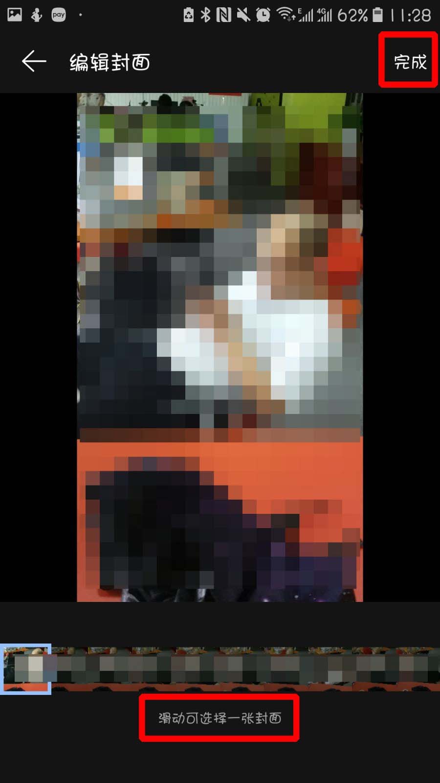 6、接着来到编辑封面的页面,我们先滑动下方图片选中封面,再点击右上方的【完成】