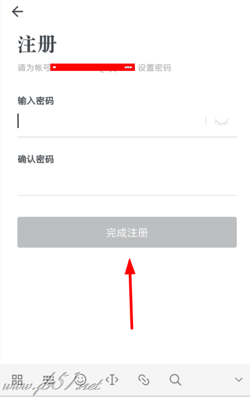 3、在这之后,从注册页面里重复输入两次密码进行确认,点击下方“完成注册”的选项,就可以成功注册石墨文档了。