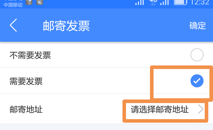 6、拉到订单最后你会看到有个邮寄发票,点击邮寄发票,选择需要发票,并点击邮寄地址。就可以下订单了。