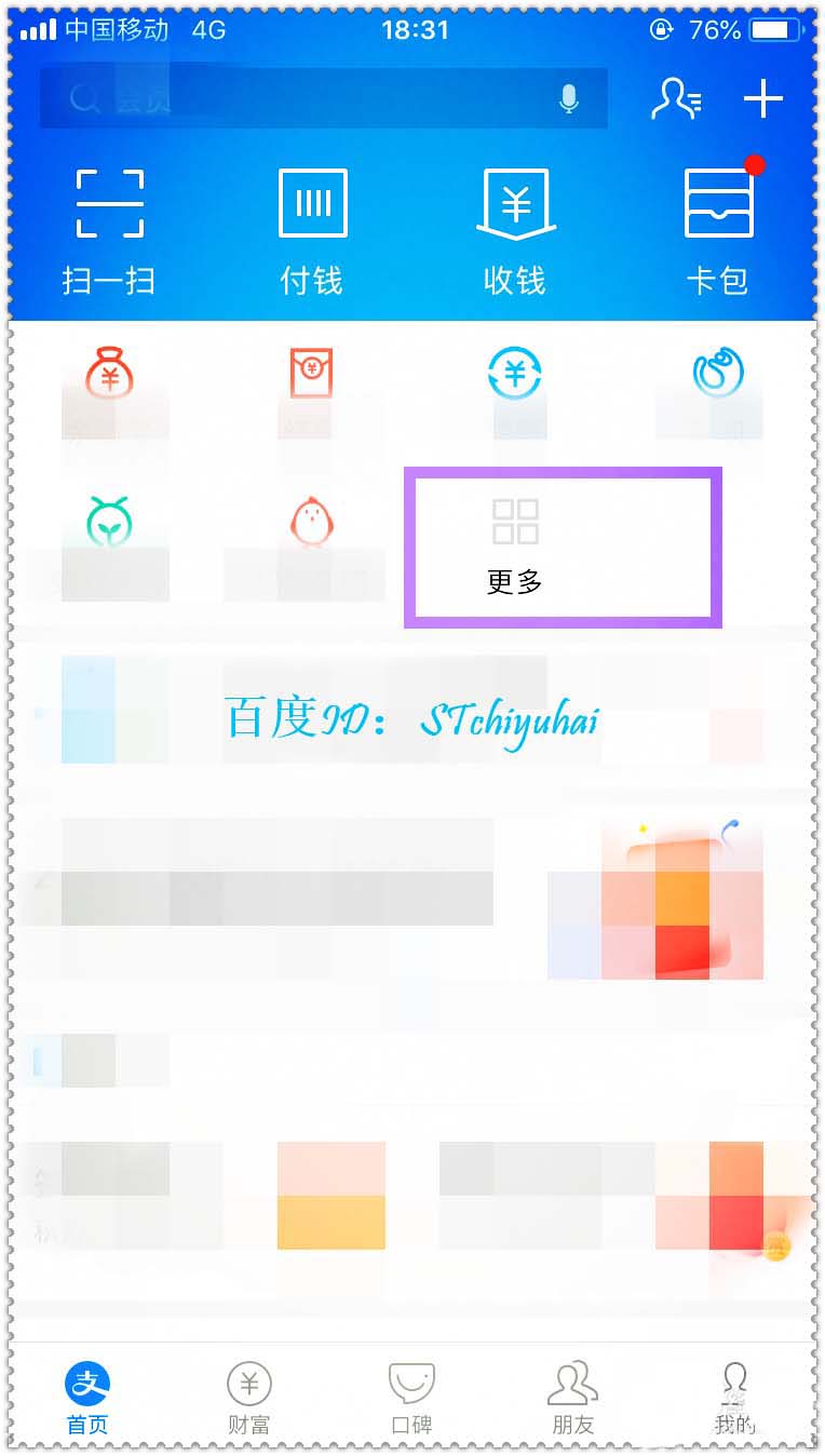 2、进入支付宝主界面,点击更多,找到体育运动模块,点击进入。