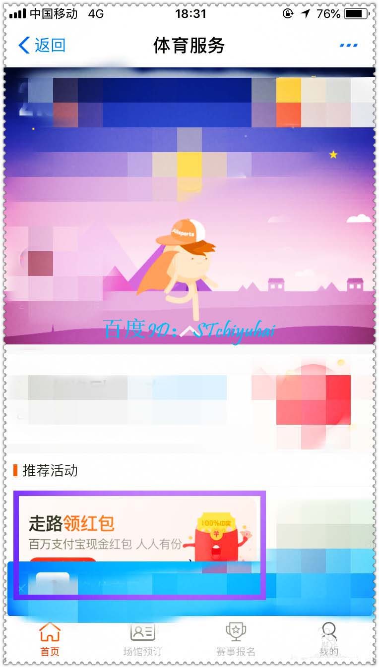 3、进入后可以看到很多关于运动的互动,下拉找到走路领红包,点击进入。