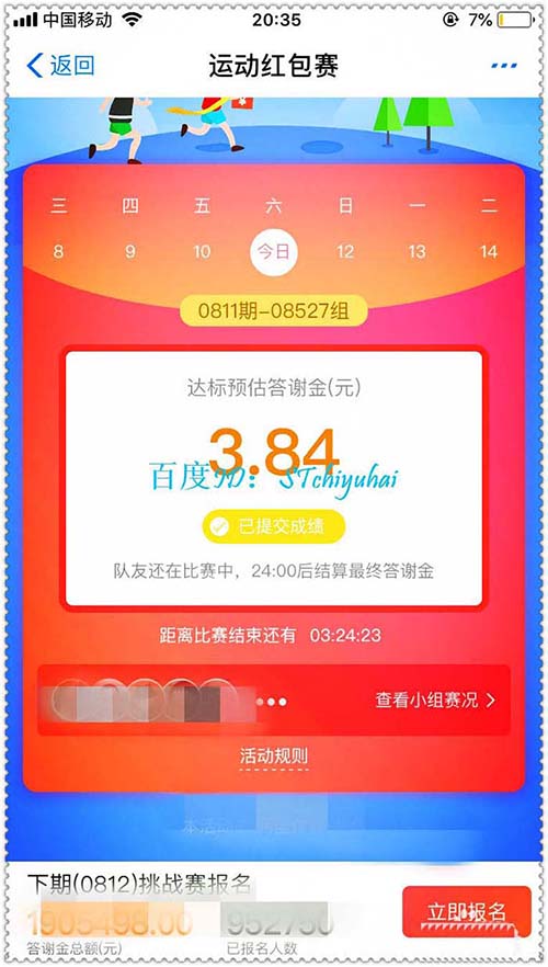 6、支付完成第二天完成走5000步的任务,然后重新返回这个界面,点击进入,支付宝会提交相关步数数据,结束后结算。