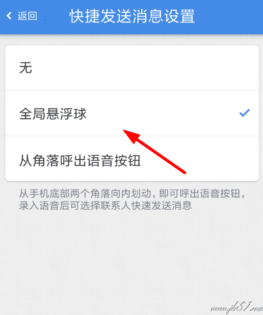 2、接下来在其中点击勾选“全局悬浮球”选项,就可以通过长按悬浮球来录音发送消息了。