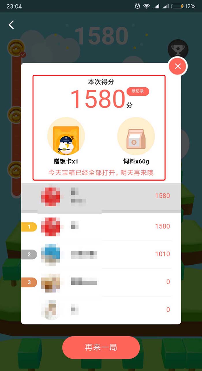 7、还有个小窍门,就是金币能吃尽量吃,但后期小鸡跳跃的速度会越来越快,如果来不及反应,就尽量让小鸡跳到间隙比较大的地方,这样更不容易实物,如此更容易获得高分,进而获得奖品。