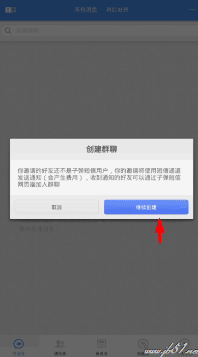 3、如此一来,子弹短信官方就会发送短信提示对方,收到通知的好友通过子弹短信的网页端即可加入群聊。