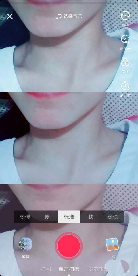 4、 找到三连拍我们就可以拍视频了,拍视频时我们可以选择美化等功能,可以把视频拍得更好看。