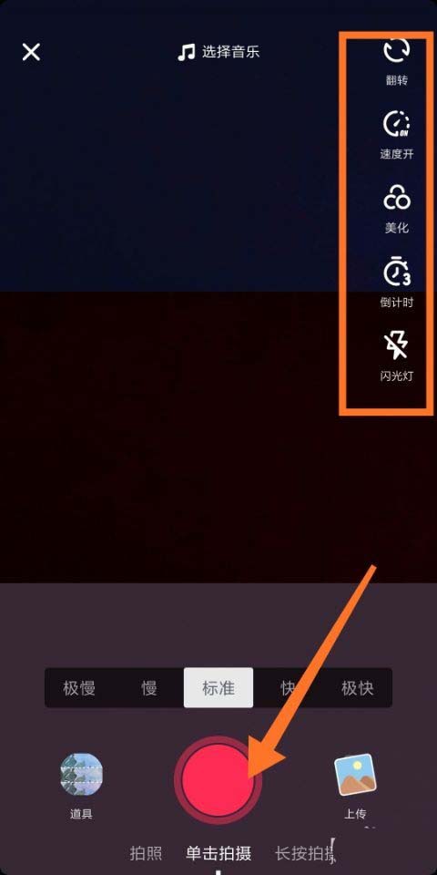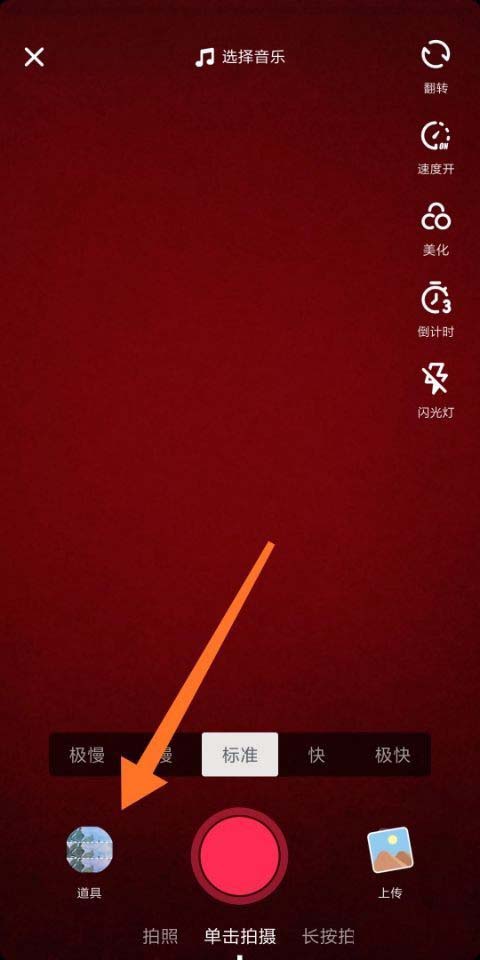 2、进入拍视频页面后,我们点击左下角的道具,如图所示。