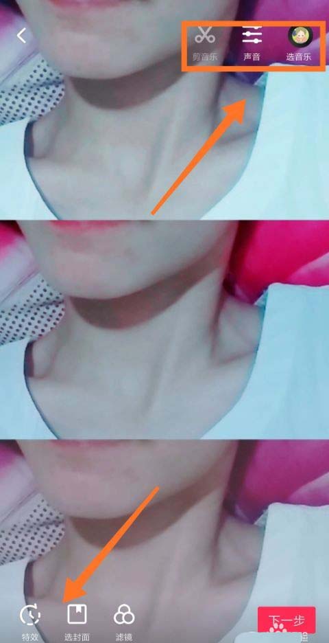 5、拍完视频我们可以给视频配乐或者添加一些其他的特效,如图。