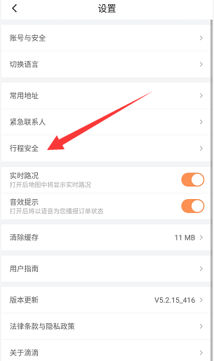 4、进入到设置界面之后,在界面中找打“【行程安全】”,点击进入