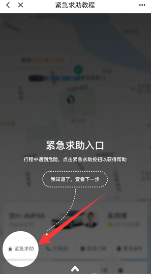 7、进入到紧急求助教程之后,可以看到在乘车期间紧急求助的流程