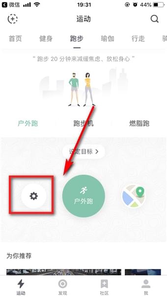 然后点击“户外跑”旁边【设置】齿轮图标,进入跑步设置界面