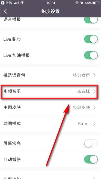 接着往下滑动并点击【步频音乐】