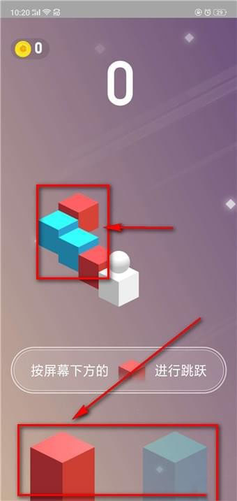 2.进入游戏后看小球下一个方块是什么颜色,就在下方按下对应的颜色让小球进行跳跃,并且跳跃是有时间限制的,如果在5秒内没有跳跃的话小球下方的方块就会消失,当然按错颜色的话小球下方的方块也会消失