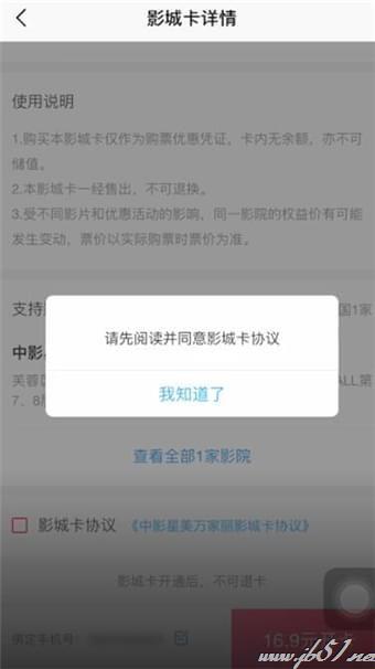 接着在影院名称下方可以看到【影城卡】,进入后就能开卡了,价格不贵,非常实惠。