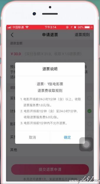 4.然后选择退票原因即可提交退票申请,需要注意的是app会收取一定的退票手续费