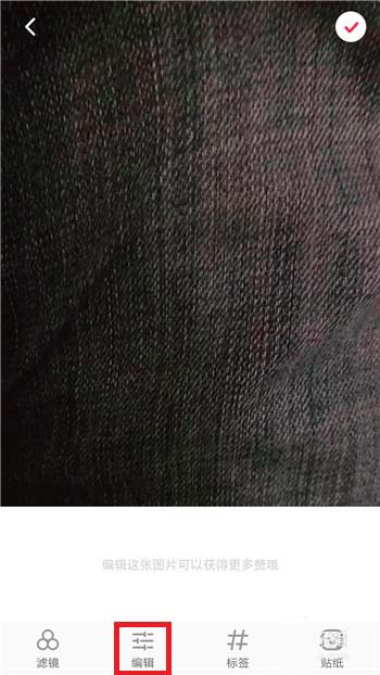 5、在编辑界面中开始处理图片,处理好图片后点击右上角的【✔】选项。