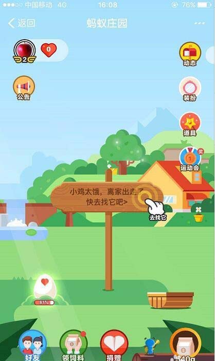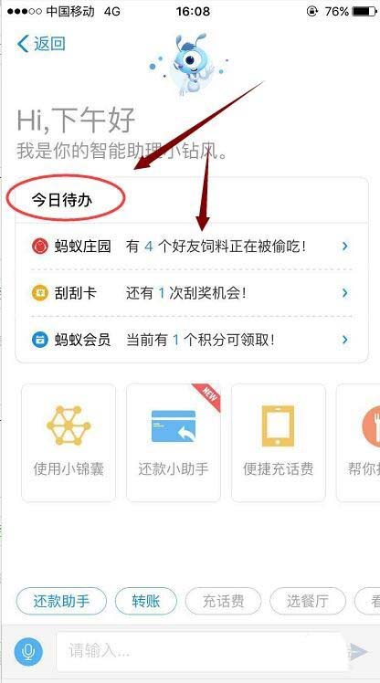 4、上面有待办的事宜,比如蚂蚁庄园,点开就可以进行查看,未领取的蚂蚁刮奖也可以直接点击领取