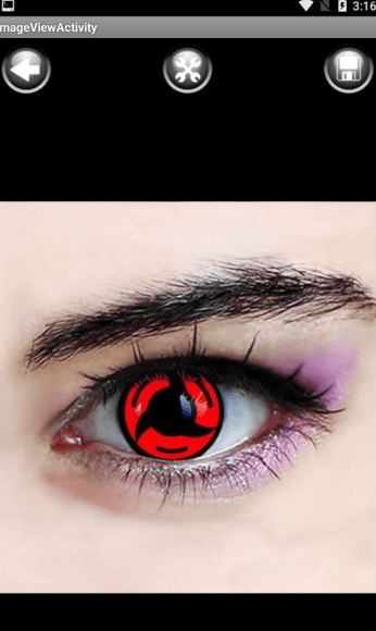 2.选择一张照片和你喜欢的写轮眼,一键应用写轮眼调写轮眼大小及透明度即可