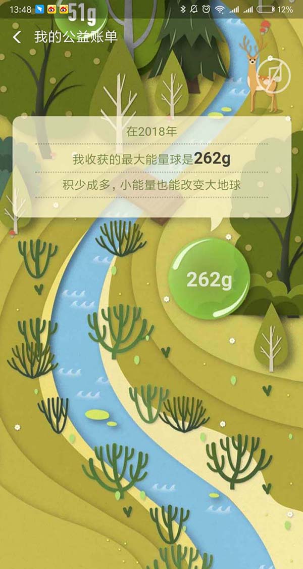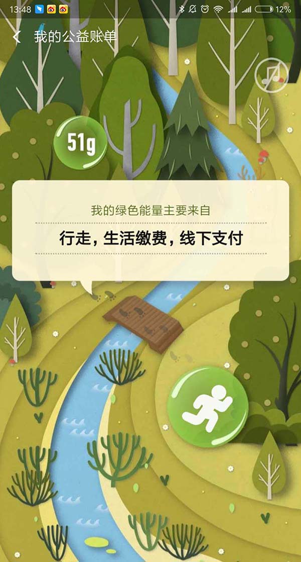 4、打开后可以看到我们的公益的详细数据,例如你自己的绿色能量的来源。