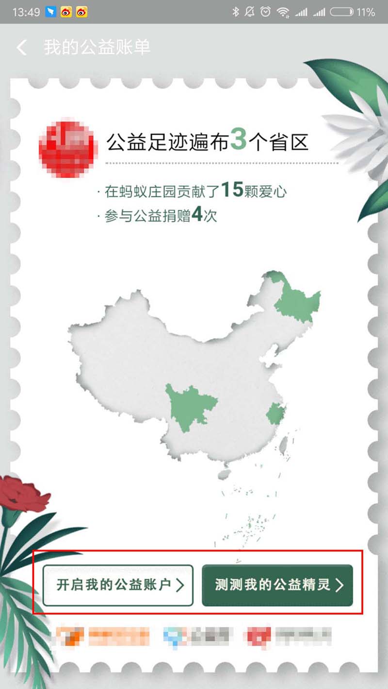 6、然后可以看到你自己的公益都做了哪些,点击【开启我的公益账户】,就可以进入到公益账户中。