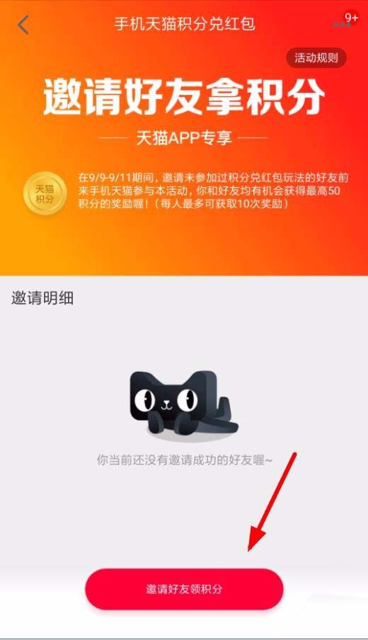 5、当我们手机天猫积分不够的时候,我们可以选择下方的邀请好友拿积分来获得手机天猫的积分。