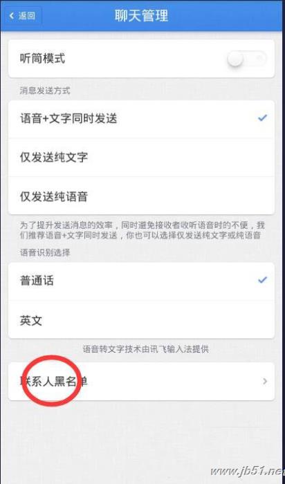 2、进入后在下方找到联系人黑名单