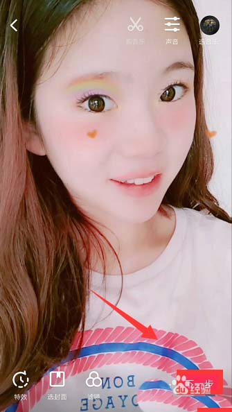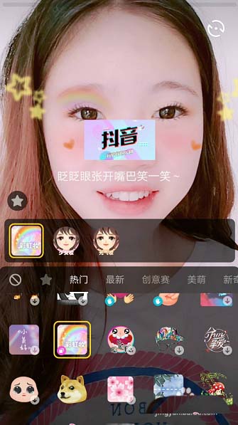 4、按照要求眨眨眼,张张嘴,笑一笑,可以触发彩虹妆里的星星,爱心等形状。