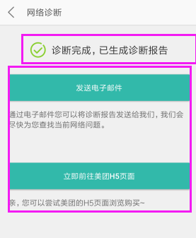 7、点击【网络诊断】。页面会出现“正在诊断”的提示。诊断完毕后,页面会出现“诊断完成,已生成诊断报告”。我们可以发邮件给官方或是直接通过网页版本购买。