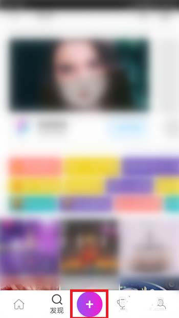 3、打开PicsArt后在首页中点击底部的【+】按钮。