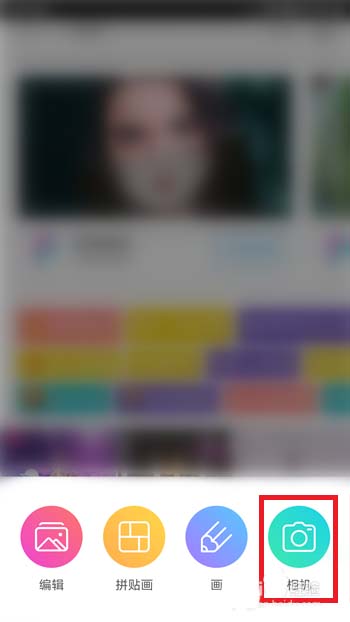 4、点击后会在下方出现四个选项,这里我们点击打开【相机】准备拍照。