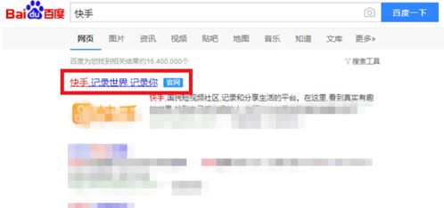 在百度上搜索【快手官方】,点击进入快手官网。