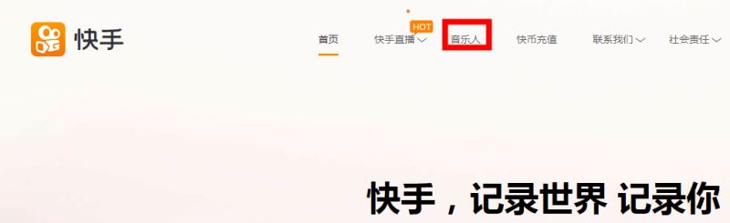 进入快手官网,在顶部位置点击【音乐人】选项,