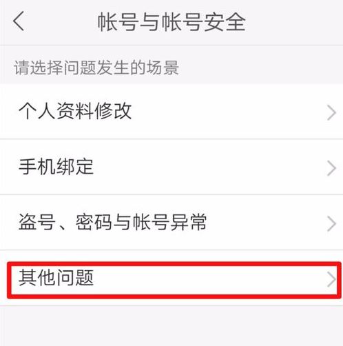 进入到账号与账号安全页面,点击【其他问题】。