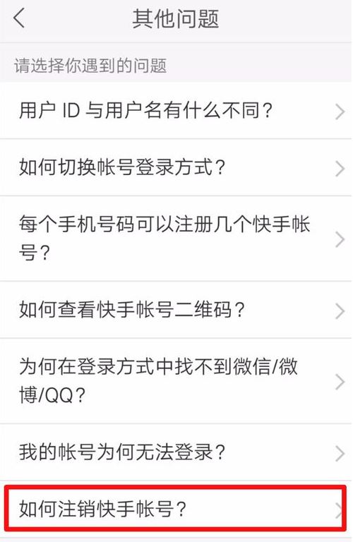 进入到其他问题页面,点击【如何注销快手账号】。