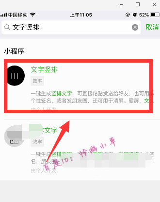 2、搜索“文字竖排”,点击进入小程序。
