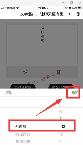 4、可以选择边框、字体大小,我们选择无边框,12号字。