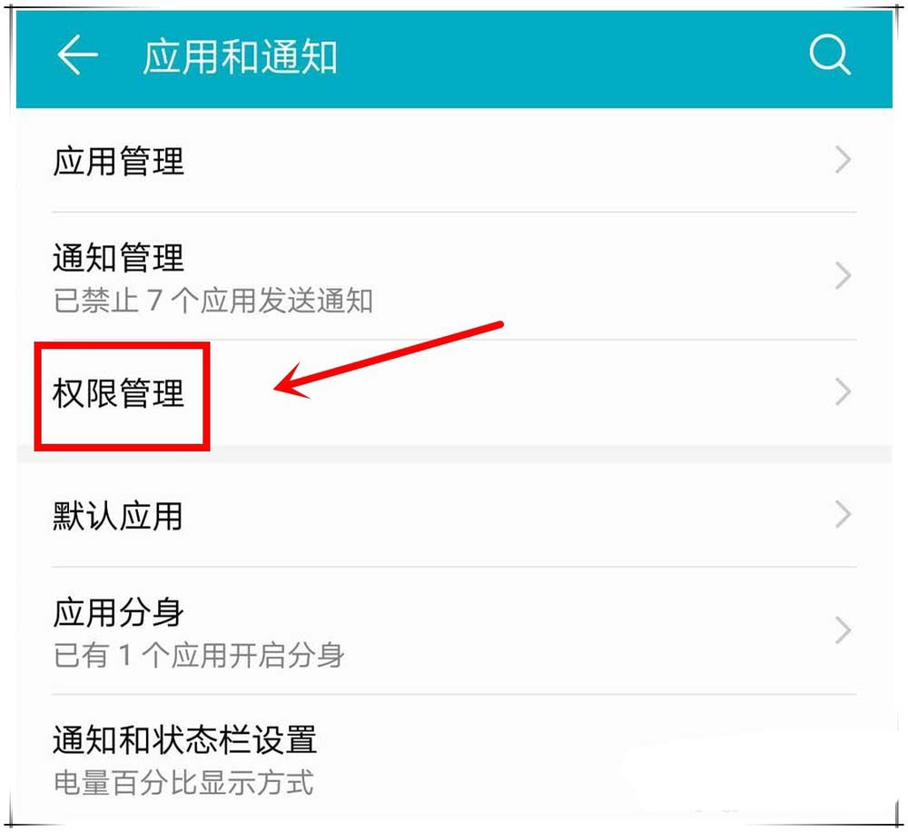 4、打开“应用和通知”页面,进入“权限管理”选项。