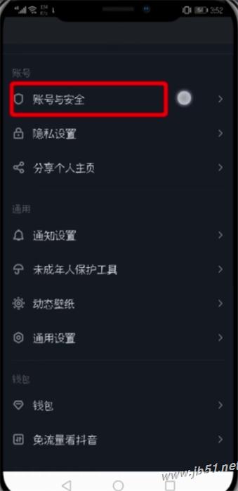 3、点击“账号与安全”
