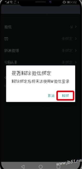 6、点击“解绑”即可