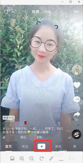 1、打开抖音,点击拍摄按钮,也就是底部中央的加号。