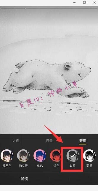 4、找到倒数第二个,就是“过往”,这就是怀旧的滤镜了,选择它,并开始拍摄。