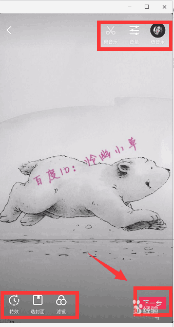 5、拍摄完成后,如果有需要,可以添加一下音乐等,然后点击“下一步”。