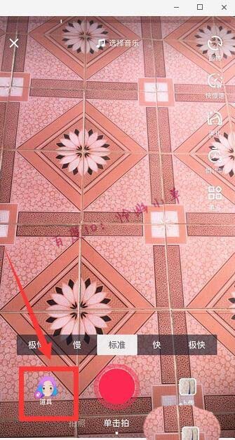 2、先别急着开拍,选择一下“单击拍”旁边的“道具”。