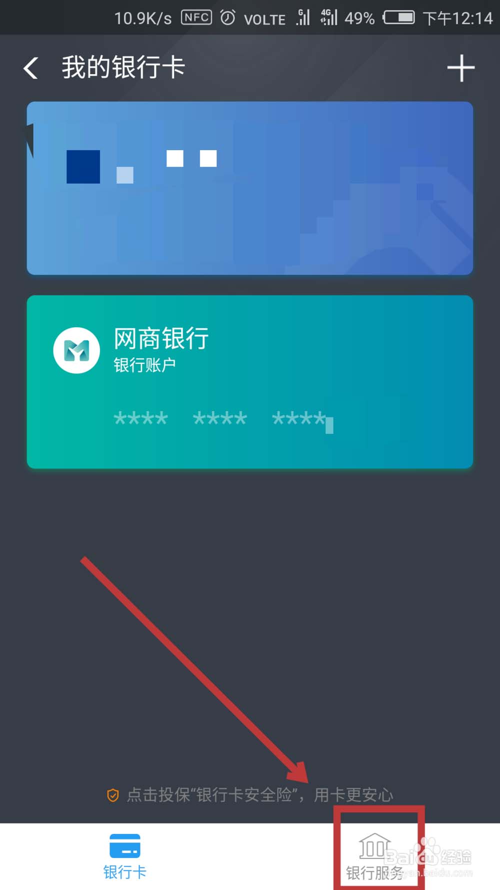 3、在界面的最下方有【银行卡】和【银行服务】两项,点击【银行服务】,点击进入。