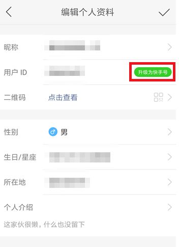 我们可以看到当前的快手ID,想要修改快手号、必须先把ID升级为快手号,点击后面的【升级为快手号】选项。