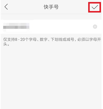 在新的页面中输入我们想要修改的快手号,然后点击右上角的【√】,注意,快手号只能进行一次设置。