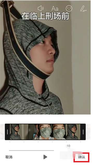 随后进入剪辑界面,滑动选取裁剪范围,点击【确定】。
