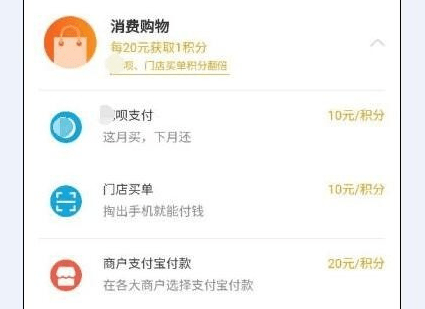 途径1:使用支付宝进行线上线下支付、网购,线下支付除了能累计积分外还能领取奖励金。