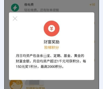 途径3:使用支付宝进行投资理财,主要包括在支付宝系统中的余额宝、定期理财、基金和黄金投资等,只要每月日均总额超过一千元便可获得积分,150元换取1积分,封顶2000积分。