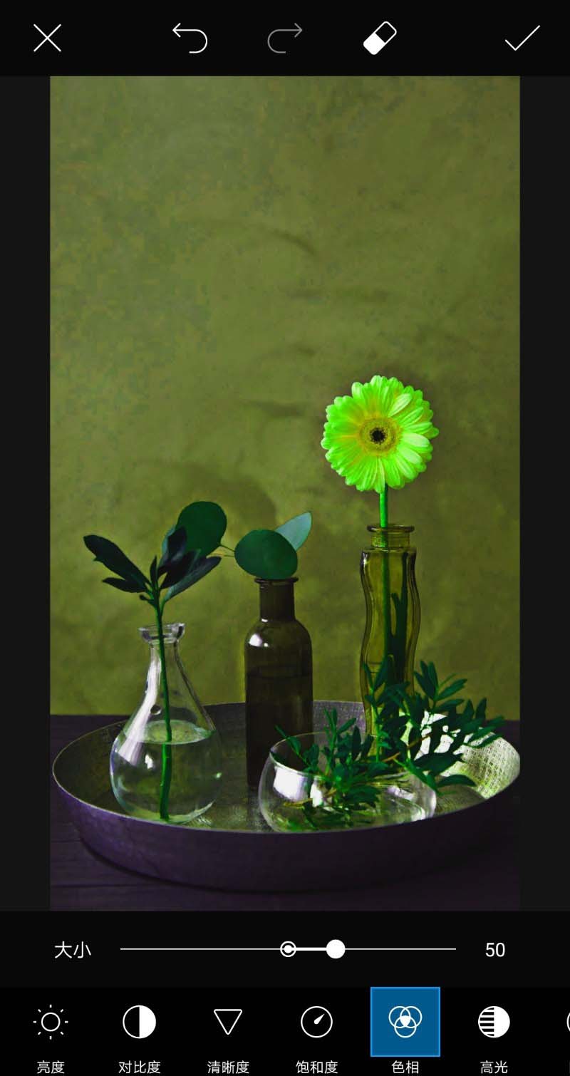 5、清晰度为50,饱和度为100,色相为50.
